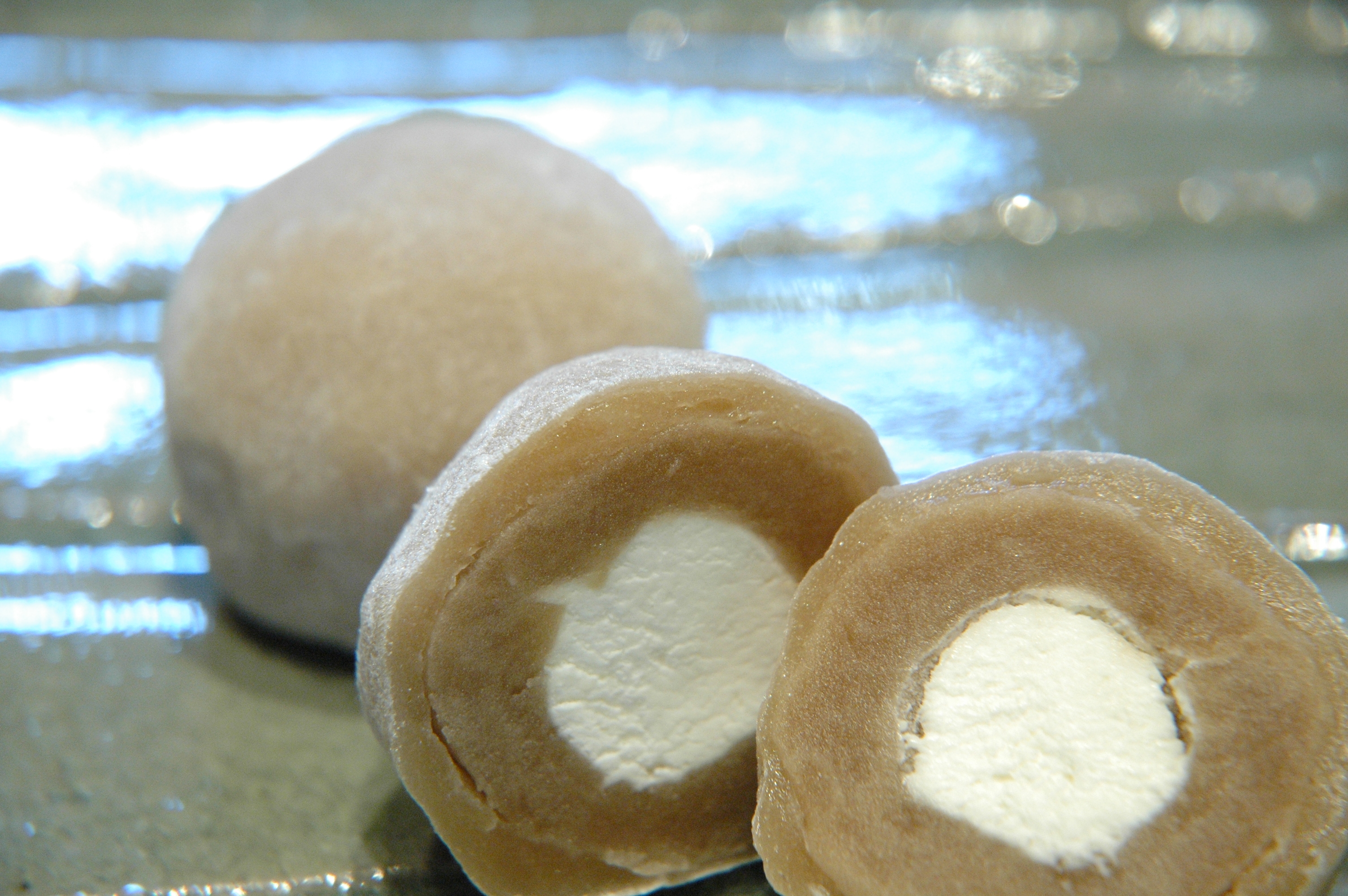 お餅の中は生クリームの芯をコーヒーあんで包みました。まろやかな生クリームと香り高いコーヒーの香りの3層の美味しさを是非味わってみて下さい。