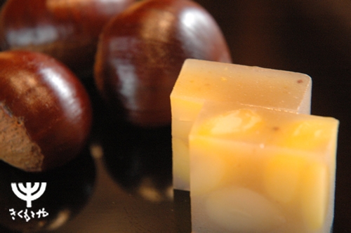 〈柚子饅頭〉この時期に柚子湯に入る習慣がありますが、柚子には薬効があり丈夫で健康にとの意味があります。 | 〈栗蒸し羊羹〉もっちりとした小豆の香り漂う栗蒸し羊羹中身には渋皮煮栗を栗あんで包んだひと品です。 (栗が美味しく召し上がれる期間のみ販売しております。) 【賞味期間】 5日間 | |||||