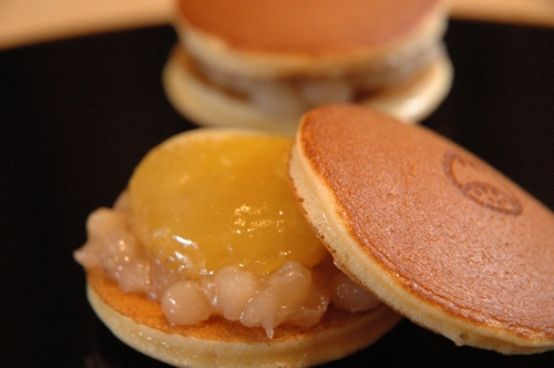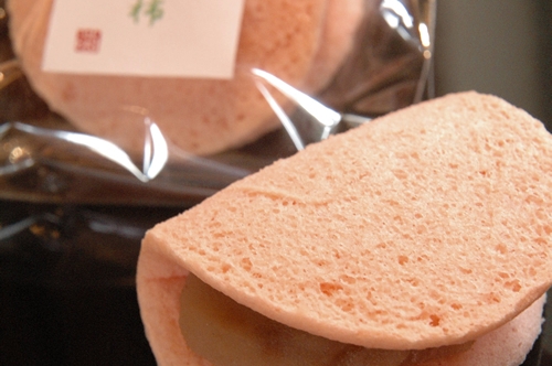 〈栗どら焼き〉しっとりとしたドラ焼生地にサンドされているのは白小豆のつぶあんと大きめの栗の甘露煮です。 | 〈木守柿〉 | |||||